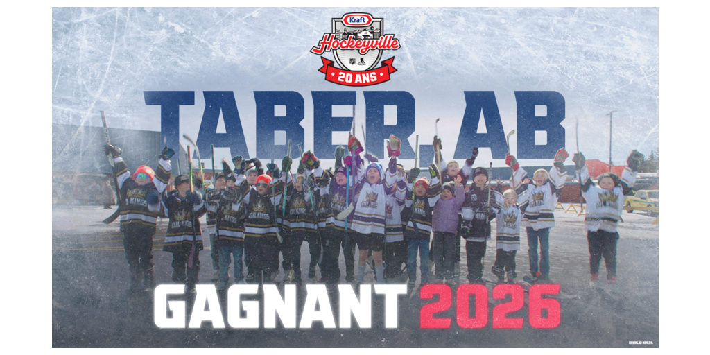 À la suite d’un vote national, les Canadiens ont choisi Taber, en Alberta, comme grande gagnante de Kraft Hockeyville 2026. La ville a remporté ce titre grâce à son histoire inspirante de résilience et de fierté, ainsi qu’au rôle central que joue son aréna dans le rassemblement de la communauté. Le commentateur sportif Ron MacLean et le commissaire de la LNH Gary Bettman ont annoncé la nouvelle lors de la diffusion de La Soirée du hockey au Canada sur Sportsnet en début de soirée.